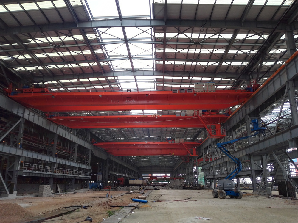 QD type hook bridge crane - the crane is a trolley general bridge crane. The crane relies on the longitudinal movement along the direction of the supporting rail on the crane beam of the plant, the transverse movement of the trolley and the lifting and lowering of the hook to realize the working process. The common lifting capacity is 5-50t, and the working level is A5-A7. There are three modes of operation for users to choose: ground control, control room control and remote control.