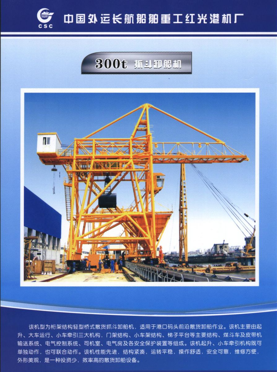 橋式抓斗卸船機(jī)是針對(duì)中小型港口的碼頭進(jìn)行散料卸船作業(yè)研發(fā)的一種投資少、見效快的卸船設(shè)備,作業(yè)對(duì)象船為3000噸級(jí)別江駁,兼顧5000噸江海駁,使用四索抓斗進(jìn)行散料卸船作業(yè)。該機(jī)性能先進(jìn)、重量輕、效率高、運(yùn)轉(zhuǎn)平穩(wěn)、操作簡便、安全可靠、維修方便、外形美觀,整機(jī)性能指標(biāo)達(dá)到國內(nèi)水平。