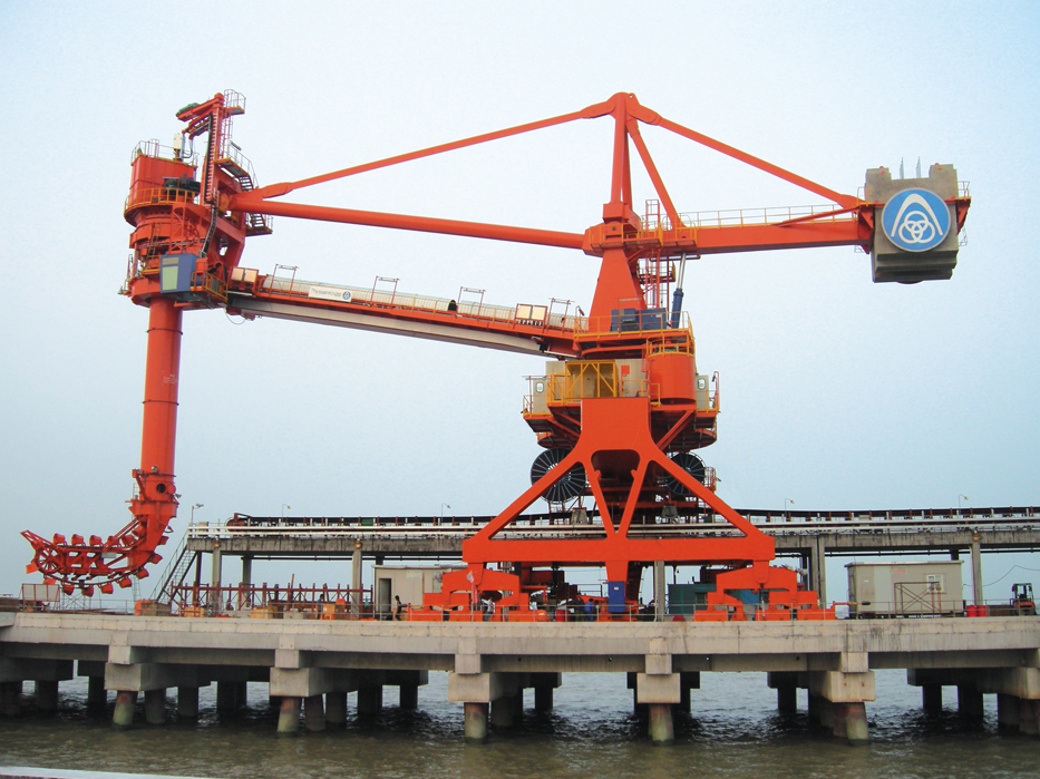 按所卸物料主要可分為卸礦和卸煤兩種,也有特殊設(shè)計(jì)的機(jī)型可兼顧卸礦及卸煤。通常鏈斗式連續(xù)卸船機(jī)卸煤機(jī)型額定卸船能力在 1200t/h—2500t/h 之間,卸礦機(jī)型額定卸船能力在 2000t/h—4500t/h。